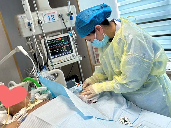 北京大学滨海医院静脉治疗团队针对患者体位受限、血管条件差、呼吸机依赖等难题,制定个性化置管方案(超声引导、改良体位固定)。护理人员全程安抚患者情绪,通过非语言沟通(手势、图示)提升其配合度。最终导管顺利抵达上腔静脉,置管成功,实现安全输液、减少患者反复穿刺痛苦,为抗感染和营养支持治疗提供强有力的保障。
