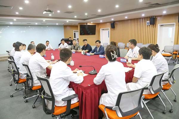 9月23日,北京大学医学部副主任、北京大学滨海医院党委副书记、院长肖渊,北京大学滨海医院党委书记、执行院长刘明勇莅临生态城医院调研指导。生态城医院党委书记李章一、院长高翔、党委委员及各职能科室负责人共同参加。