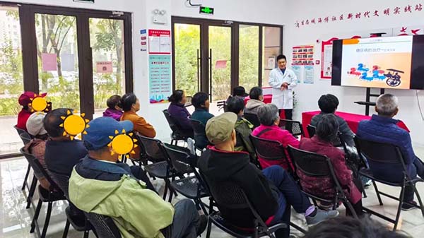 活动中,生态城医院内科涂宁副主任为社区居民带来了一场内容详实的《糖尿病的治疗》科普讲座,深入浅出地讲解了糖尿病相关知识。聚焦中老年常见慢性病的防治与管理,涂主任重点介绍了糖尿病的诊疗要点、科学饮食指导以及并发症的预防措施,帮助居民树立“早预防、早发现、早治疗”的健康理念。