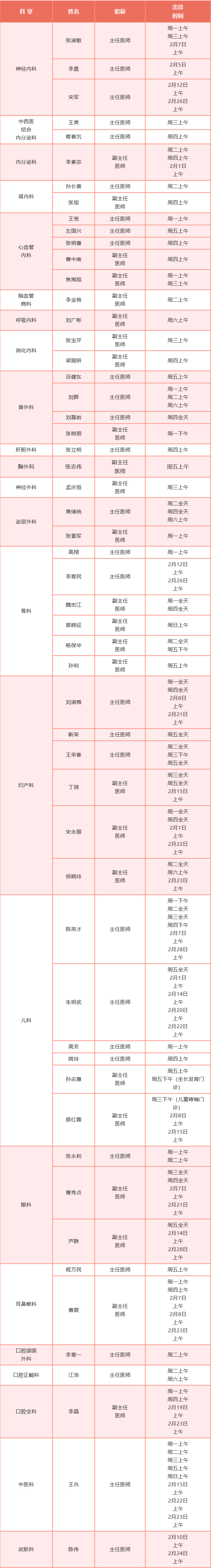 2月专家出诊安排请查收