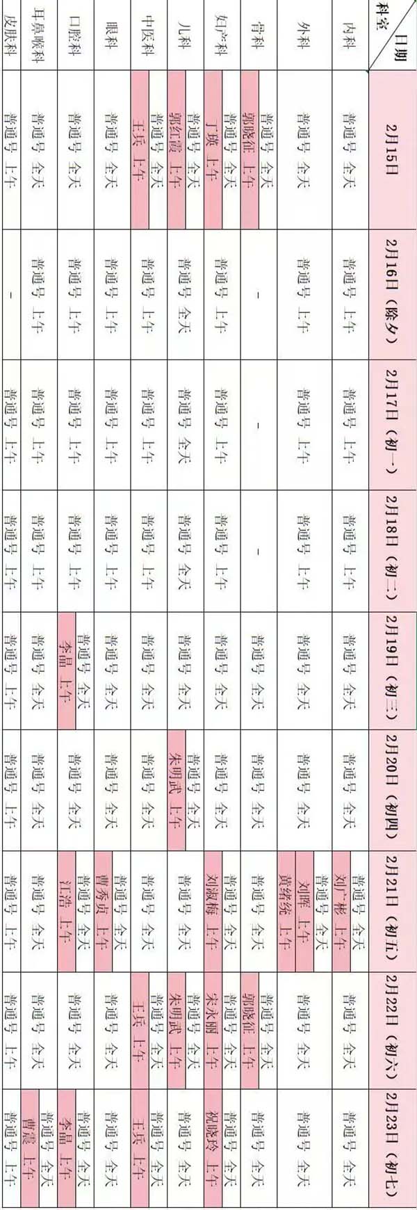 根据《国务院办公厅关于2026年部分节假日安排的通知》精神,现将春节假期门急诊出诊安排通知如下: