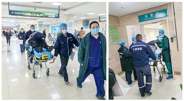 ↑五中心医院脑血管病治疗中心史万超主任团队救治上转急症患者