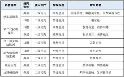 药物是目前治疗过敏性鼻炎的主要手段,常见药物如下: