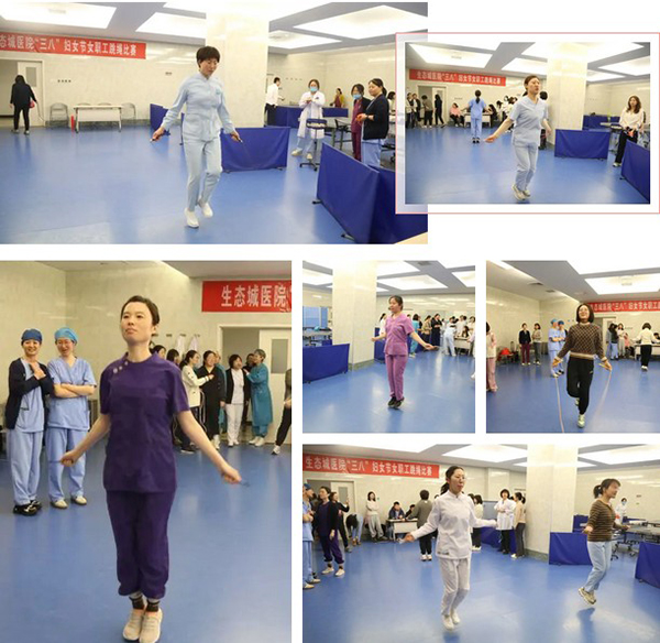 为丰富女职工文体生活,激发全员活力,生态城医院精心组织30秒单摇跳跳绳比赛,全院百余名女职工积极响应、主动参与,以竞技之美展现新时代医务女性的精神风貌。参赛选手们沉着发挥、全力以赴,在有限时间内展现最佳状态,既有稳定发挥的从容,也有突破自我的执着。观赛女职工全程驻足鼓劲,现场氛围热烈而有序。本次比赛以体育竞技为载体,不仅丰富了女职工的业余生活,更锤炼了大家迎难而上、奋勇争先的意志品质。